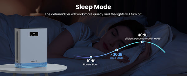 - [Two Working Modes] The room dehumidifier is designed with turbo mode and sleep mode, When you select turbo mode, the dehumidifier will work all the time to effectively eliminate moisture from the air. When you select sleep mode, the noise of the dehumidifier will be reduced to the lowest 18db, creating a peaceful living environment for you while dehumidifying the air.